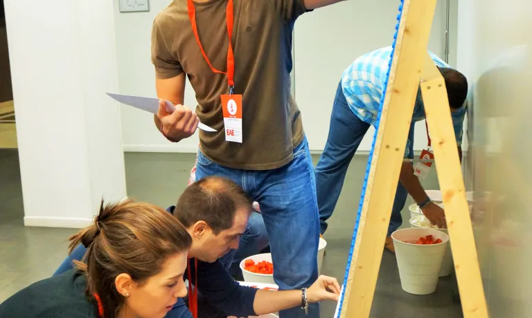 Las instalaciones de EAE Business School han acogido la jornada de team building para los alumnos, durante la mañana del sábado 22 de octubre. En cuatro aulas, los estudiantes han realizado "ejercicios de improvisación y de teatro, scrabble humano para construir palabras y jugando con piezas de lego para volver a la infancia. Esto aporta una gran cantidad de creatividad, para que, de forma entretenida, conozcan a otros alumnos y rompan el hielo el primer día", explican los responsables de la empresa que organiza el team building.