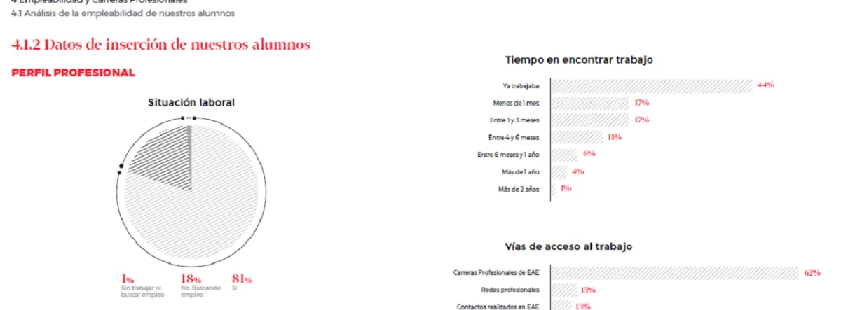 Aspectos como la empleabilidad y la visibilidad de los estudiantes de EAE ocupan el epígrafe 4 del Employment Report en el que se analiza la colaboración de la Escuela con el tejido empresarial. Para ello, se han estudiado a fondo iniciativas como el Top Recruiter, la presencia de las empresas colaboradoras, los eventos organizados por la Escuela en los que se fomenta el networking y el funcionamiento del Consejo Asesor de Recursos Humanos. Para finalizar este fragmento del informe anual reúne los testimonios de los recruiters que han seleccionado a estudiantes de EAE, quienes comparten su experiencia personal de lo que aportan estos perfiles a sus equipos.