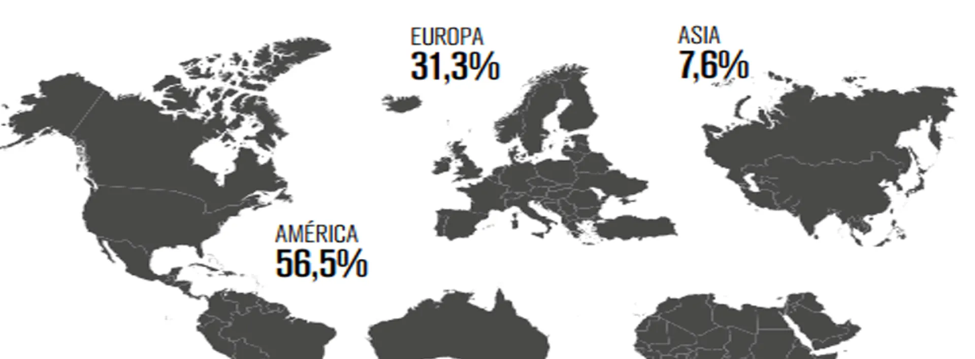 - El 3.6% vienen de África (países como Angola, Camerún, Costa de Marfil, Egipto, Gambia, Kenia, Marruecos, Nigeria o Túnez, entre otros).