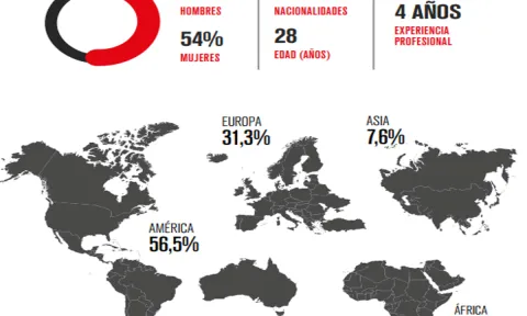 Análisis del alumno junior de EAE: 4 años de experiencia profesional, 95 nacionalidades distintas de los cinco continentes y una edad media de 28 años