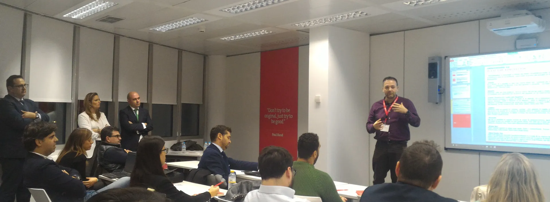 Durante la sesión de bienvenida, EAE Business School contó con la colaboración de Javier Castellanos, cofundador de El Rincón del Vago. El invitado, quien actualmente trabaja en la parte de robótica de Orange, narró a los alumnos el nacimiento de la página web y cómo ha cambiado el ecosistema emprendedor en estos años.