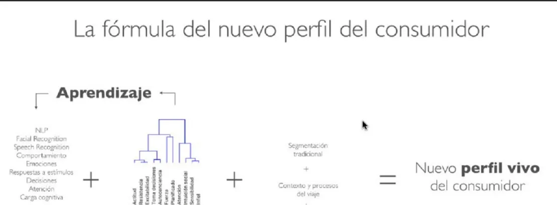 Muchas de las respuestas en la conducta del consumidor se pueden encontrar en su naturaleza animal, en su temperamento; otras están más relacionadas con la influencia del entorno en su biografía. Gustavo Rojas menciona la fórmula del nuevo perfil del consumidor, una combinación de aprendizaje, actitud, contexto y la suma de diferentes procesos de viaje alejada de la segmentación tradicional. Para ello, es preciso utilizar distintas fuentes de información para así conocer a nuestros consumidores a través de la tecnología y entender sus momentos en las diferentes etapas del proceso. Con todo ello, es posible crear un producto específico para un perfil vivo del que podemos alimentarnos con técnicas como el neuromarketing, el remarketing y el big data. De esta manera, explica Rojas, conseguiremos estar presentes en la vida del cliente porque percibe que somos la marca que realmente le entiende (por ejemplo negocios de barrio).