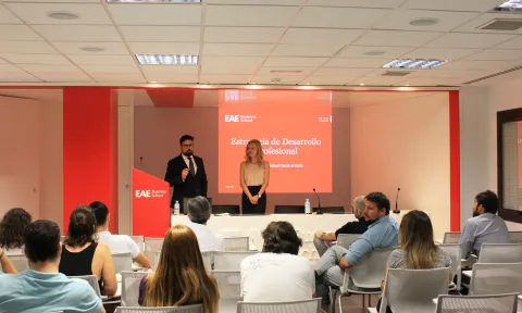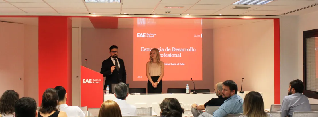 El workshop, dirigido a estudiantes de los programas Part Time y Weekend de EAE, ha contado con la presencia de Olga Prikhodko, Partner and Consultant en Q Human Resources, y David Domínguez, Partner and Consultant en Q Human Resources. Los headhunters han comenzado la sesión con una primera parte más teórica basada en la estrategia de búsqueda
