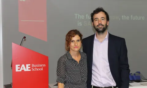 La multinacional alemana dedicada al diseño de soluciones informáticas ha protagonizado el Company Meeting de EAE celebrado en Joaquín Costa 41. Allí han acudido dos representantes de este gigante del software a nivel mundial: Ana María Gómez, Consultant Associate en SAP, y Joaquín Fernández, SAP Technical Project Leader.
