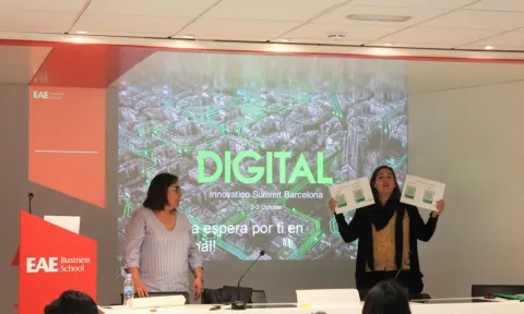 Es la segunda vez que la multinacional elige EAE para presentar el challenge Go Green in the city. El año pasado un equipo español llegó a la final en Atlanta; "fue el mejor año como territorio iberia", explica María Jesús. El hecho de que la final de la edición 2019 se celebre en territorio nacional, en la ciudad de Barcelona, es un aliciente para Diana porque "jugamos en casa".