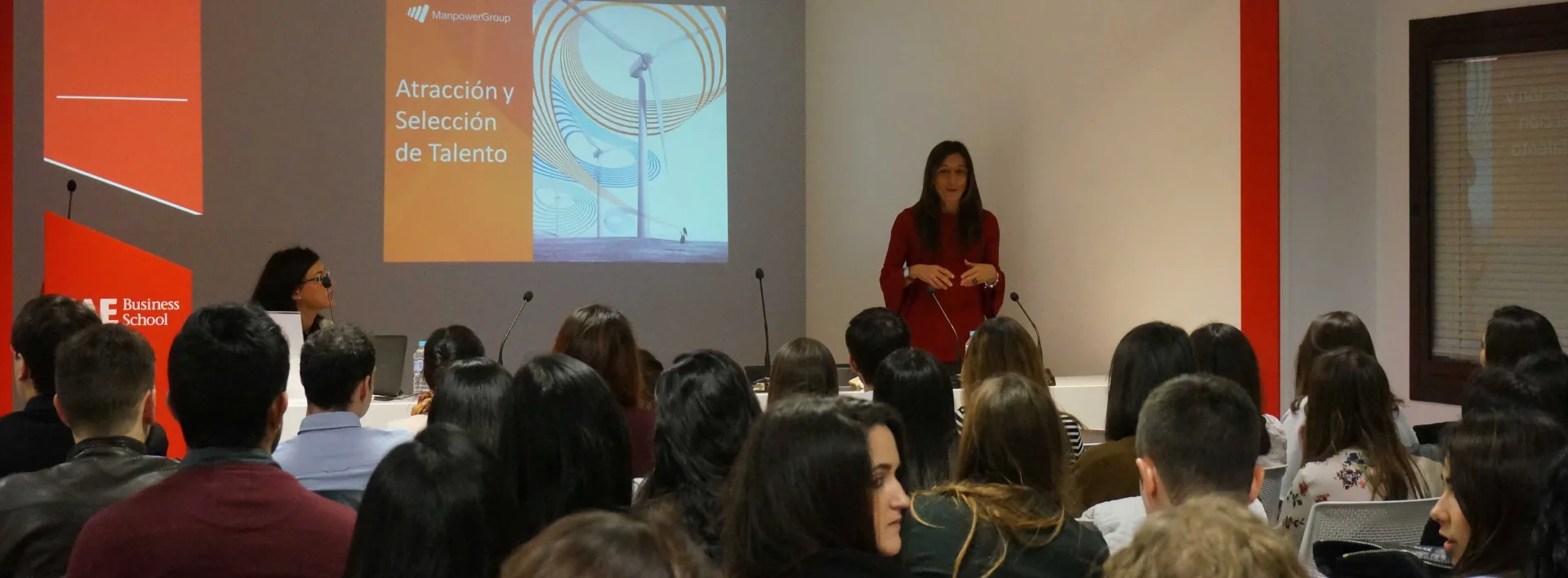 Por segundo año consecutivo, Marta Saavedra, Responsable de Atracción y Selección de Talent de ManpowerGroup España, ha acudido a la Talent Week para dar a conocer su compañía, sus programas y puestos vacantes y aconsejar a los alumnos en su carrera profesional
