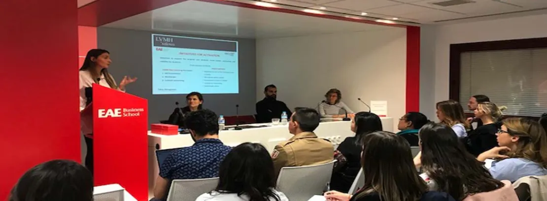 The French group LVMH, which owns brands such as Dior, Loewe and Givenchy, decided to recruit young talent at EAE Business School in November 2017. Holding a Company Meeting session at the Madrid Campus, Marta Juan, the Senior Talent Acquisition Director at the company, gave the students a presentation of the Inside LVMH program, encouraging them to apply for the vacant positions and have a rewarding, multicultural experience with an international presence.